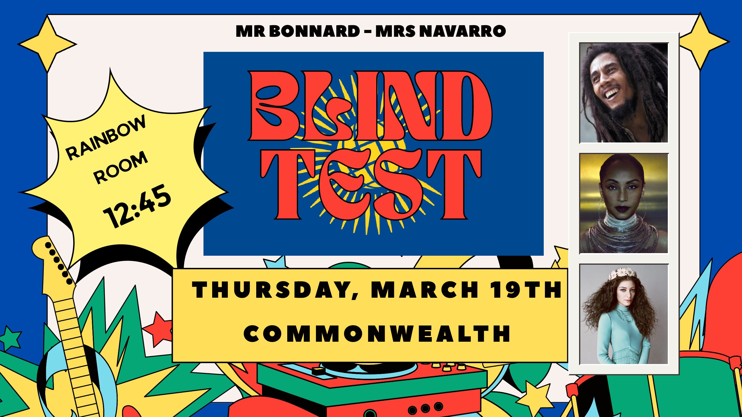 Le jeudi 19 mars, un blind test spécial Commonwealth est organisé à 12h45 à l'espace arc-en-ciel.