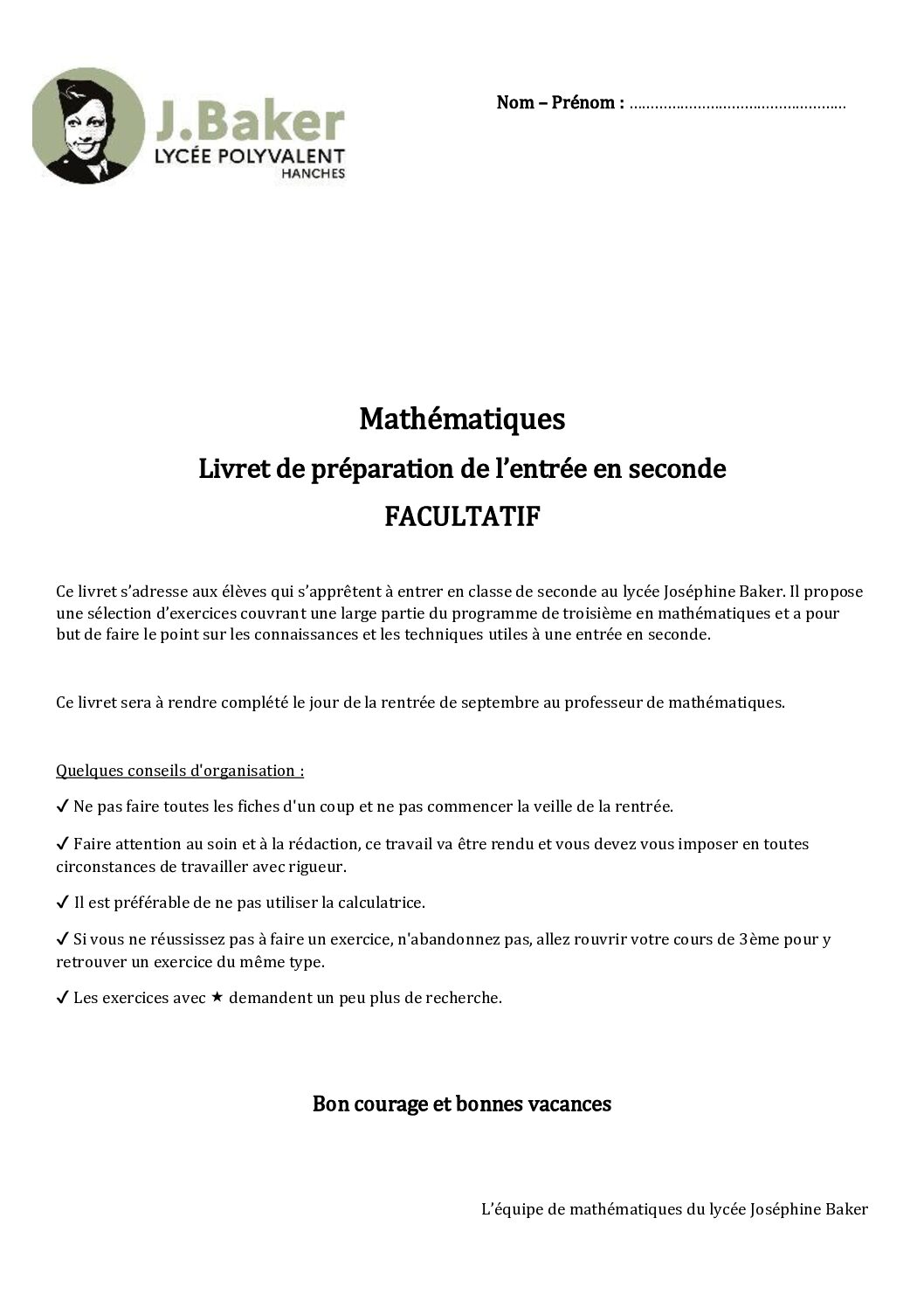 Les Mathématiques au lycée